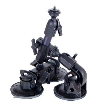 デュアル吸盤式カメラマウント、シングル吸盤式カメラマウント、三点支持用コネクタブラケットが「三点支持吸盤式カメラマウント」として1つのパッケージになりました。組み立て済みですのですぐにお使いいただけます。